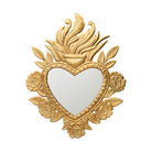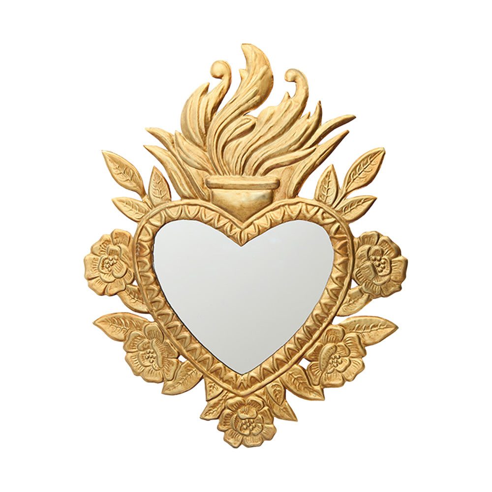 Accumulez coeur ex-votos, ornements et miroir pour une composition murale réussie.