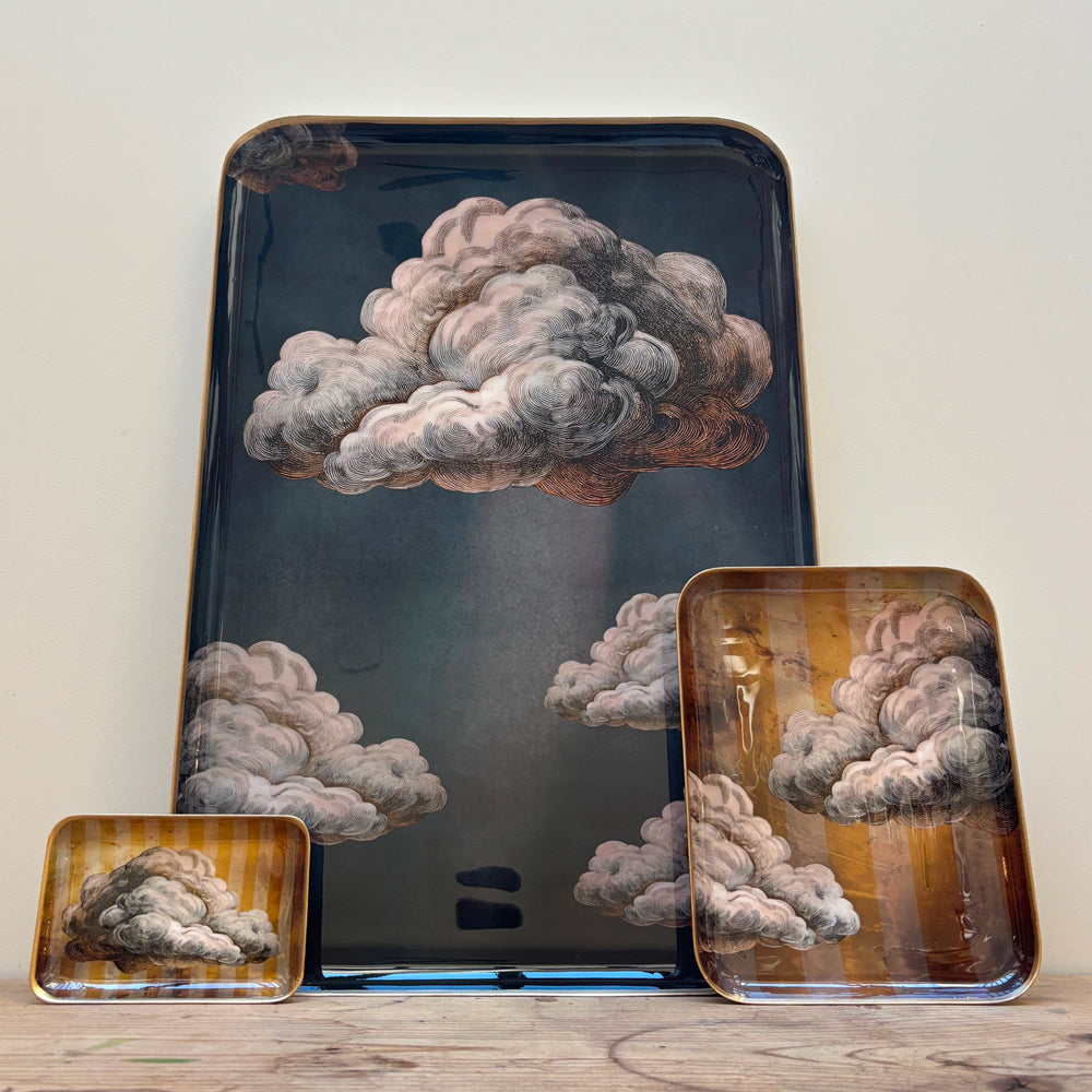 Grand plateau de réception "Nuage" en aluminium émaillé . Cet hiver, la collection "Les Yeux vers les Cieux" par Boncoeurs nous invite à regarder vers le ciel.