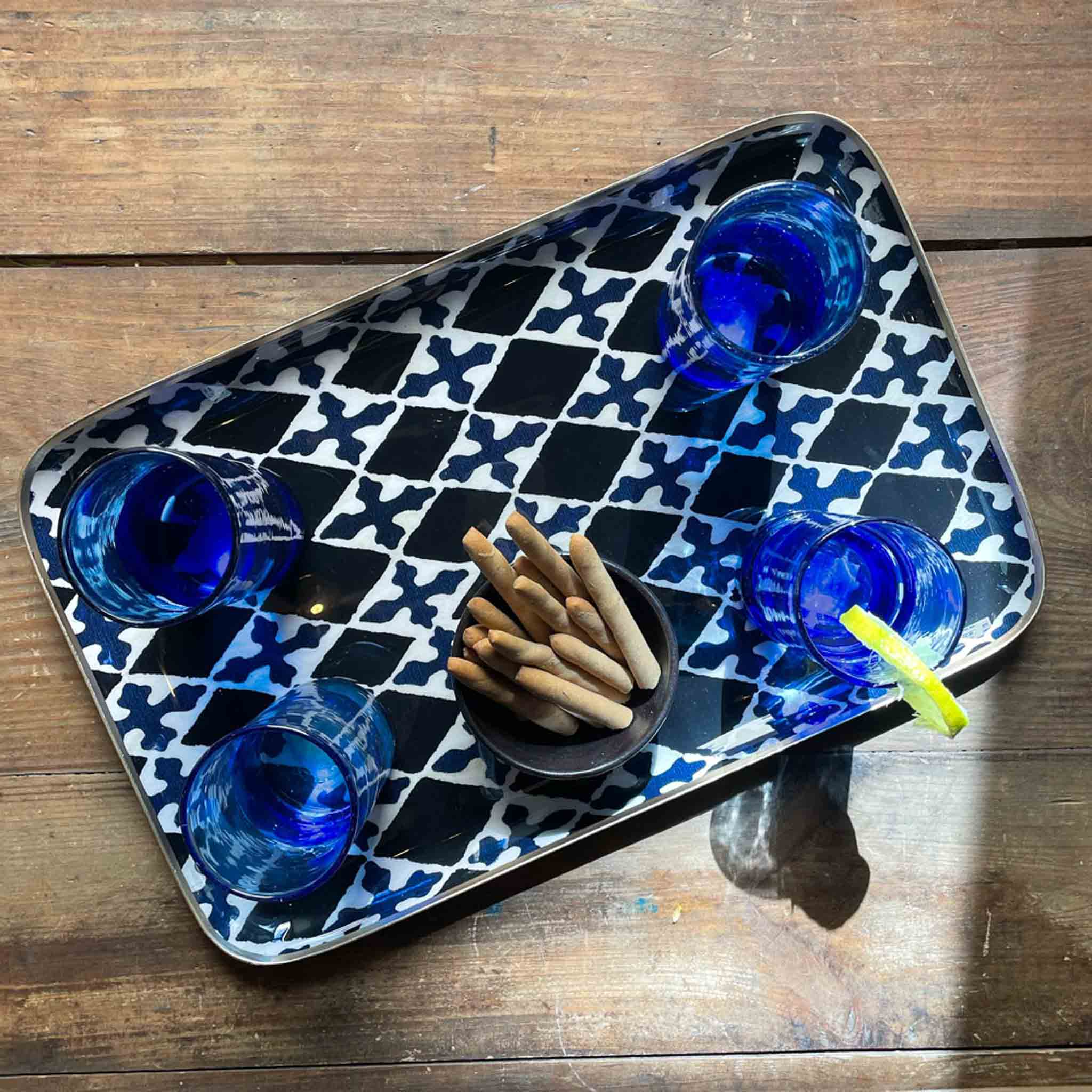 Plateau rectangulaire "Chapelle" en aluminium émaillé par Boncoeurs.