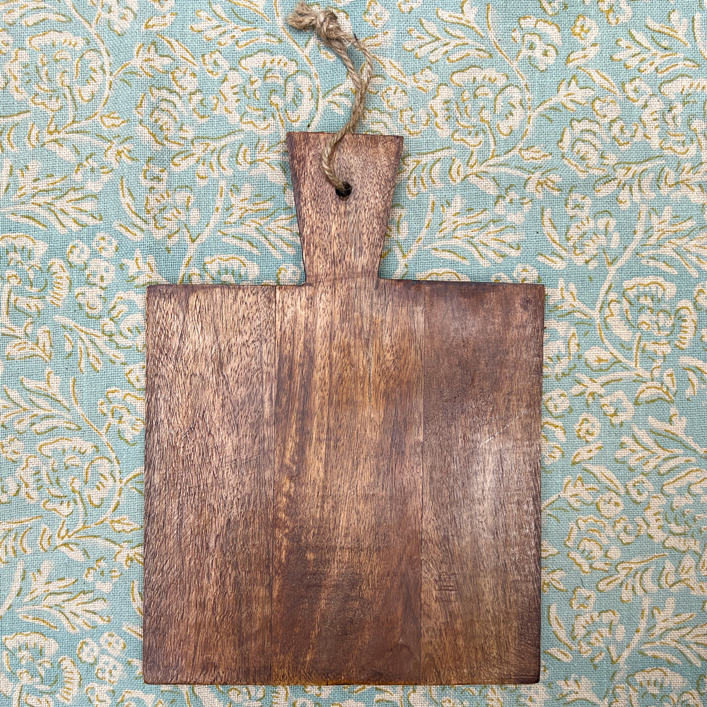 Planche à découper en bois de manguier de 19,5 x 26,5 cm.