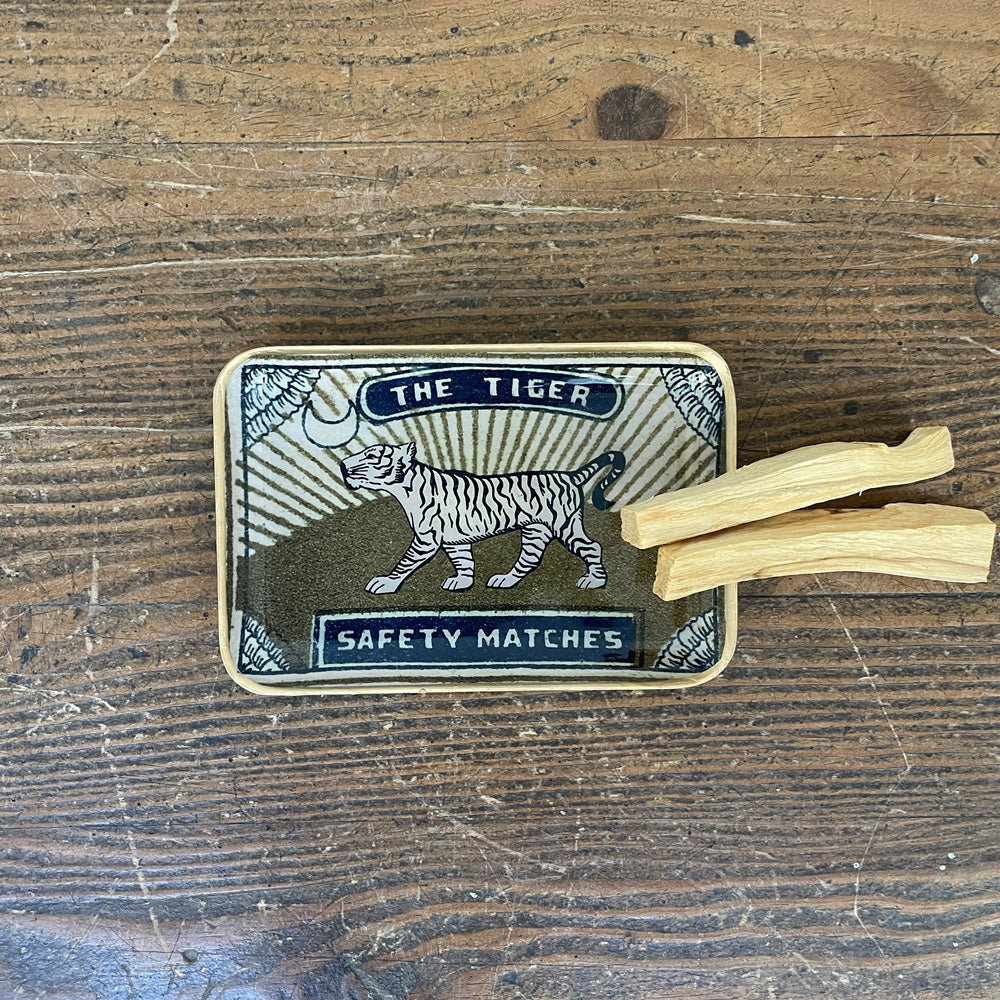 Petit plateau rectangulaire "Safety matches" en aluminium émaillé par Boncoeurs.