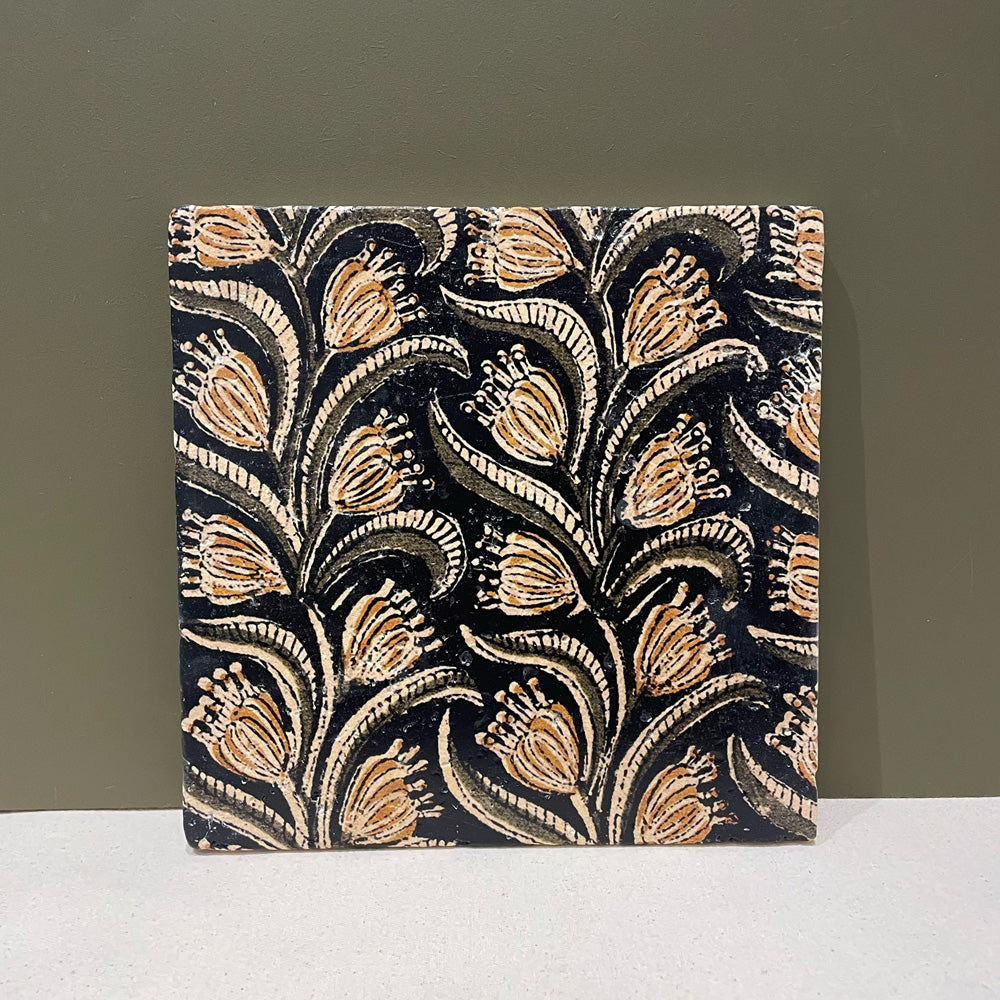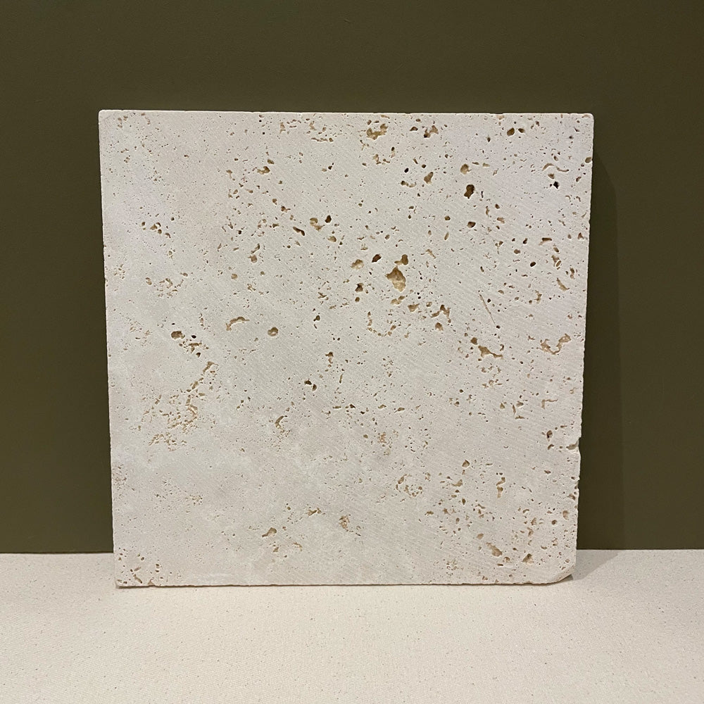 Carreau en pierre de travertin, fabriqué et imprimé dans le Sud de la France.