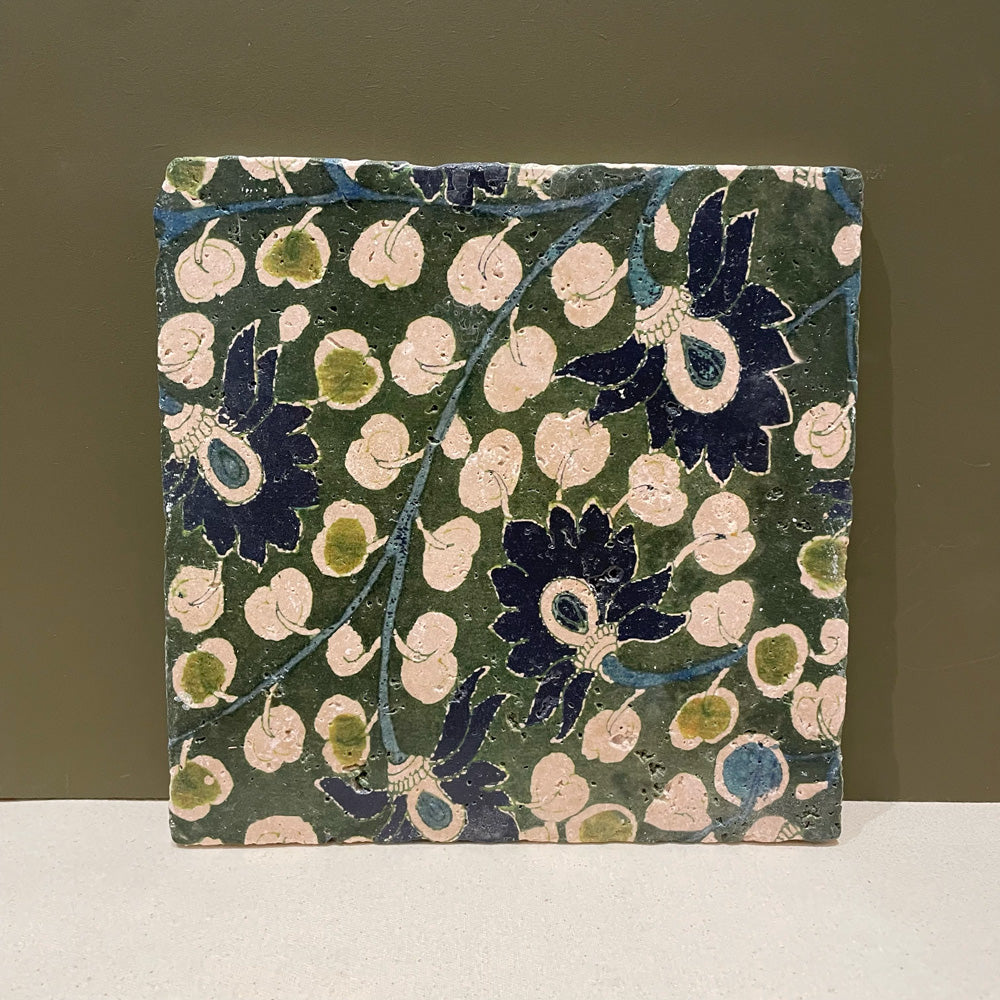Carreau de travertin - Fleuri fond vert