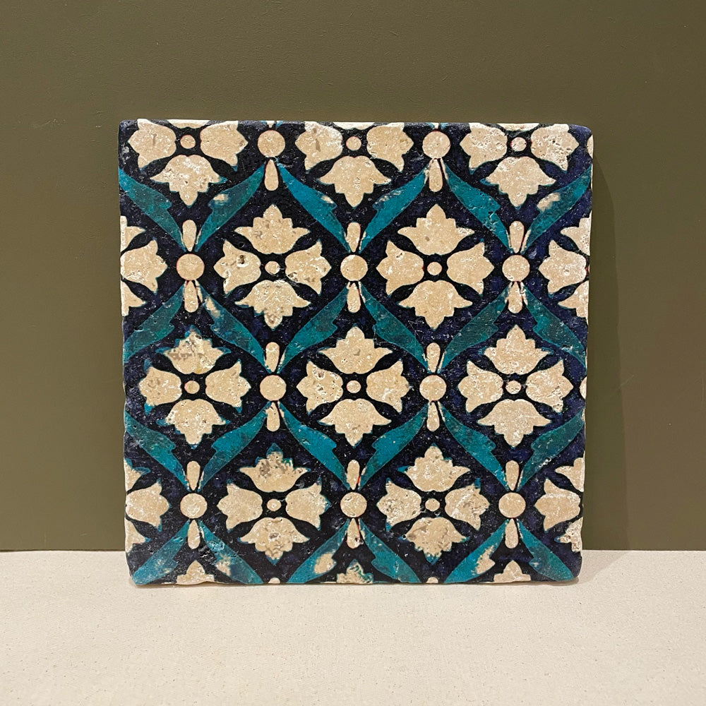 Carreau en pierre de travertin, fabriqué et imprimé dans le Sud de la France.