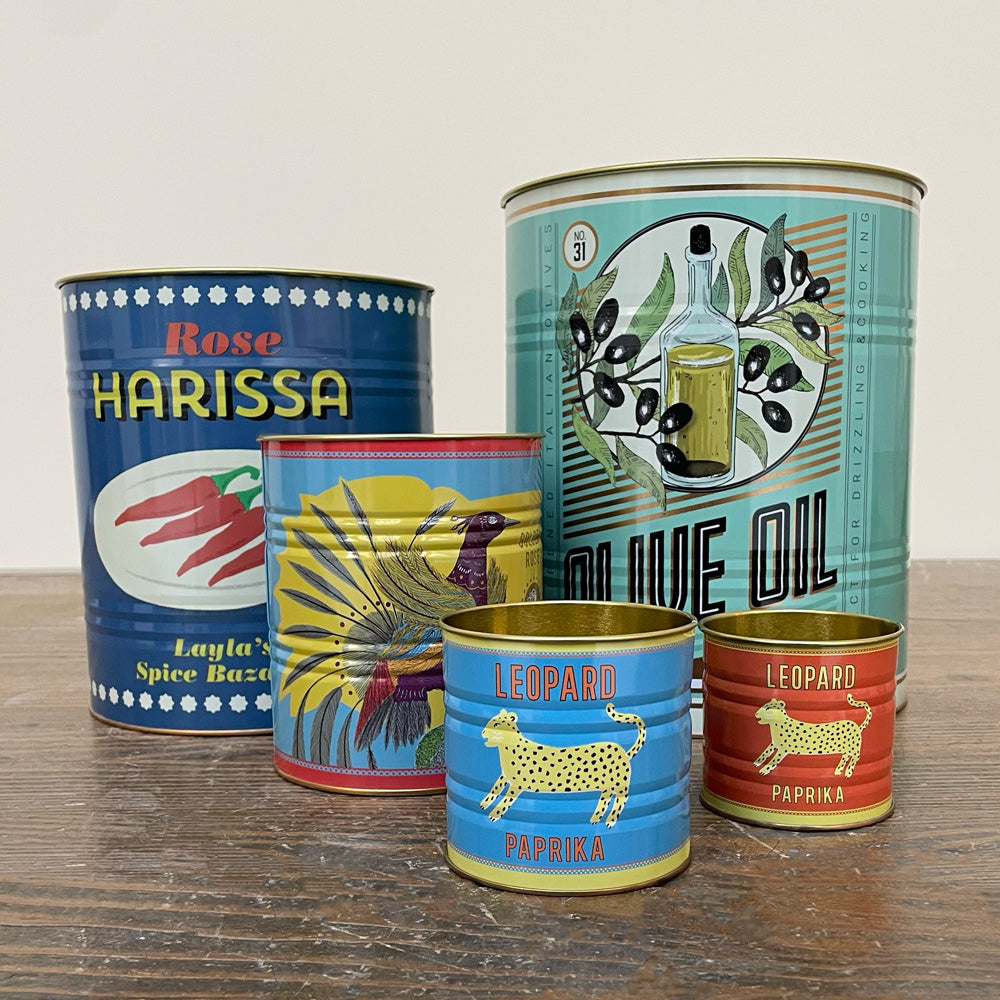 Sélectionnés pour leur esprit « boîte de conserve » et leur joli imprimé. Vous pouvez les utiliser comme cache-pot, pour ranger vos ustensiles de cuisine...