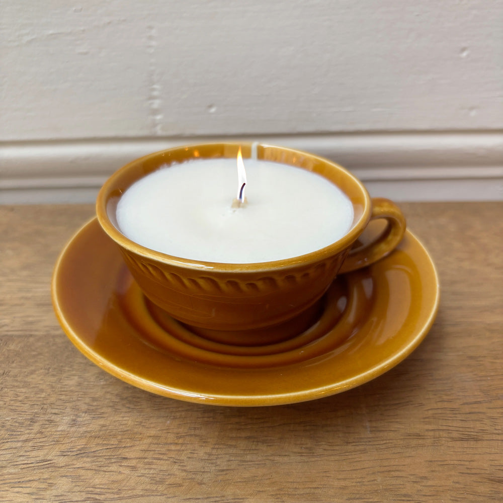 Bougie Tasse Caramel par Charity Bougies. On aime l'histoire de cette marque coup de cœur pour Bonnesoeurs: tous les contenants sont issus du recyclage solidaire et proviennent de ventes de charité. Les sœurs à l'origine de la marque coulent ensuite de la cire végétale dans ces contenants. Chaque bougie est unique (ou presque!). Le petit plus: Le contenant est réutilisable une fois la cire entièrement fondue.