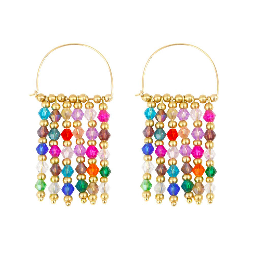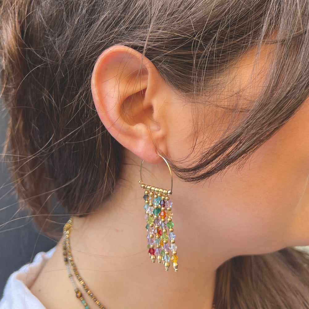 Boucles d'oreilles Kharmari en perles de laiton et de verre multicolore.