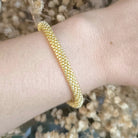 Ce bijou est confectionné à la main par des femmes népalaises qui crochètent chaque perle avec soin. L’intérieur du bracelet se compose d’un fil de coton très résistant sur lequel des perles sont enfilées puis crochetées l’une après l’autre en tubulaire.