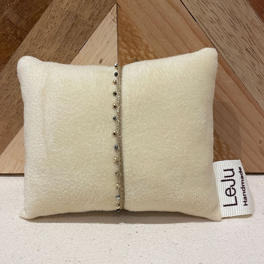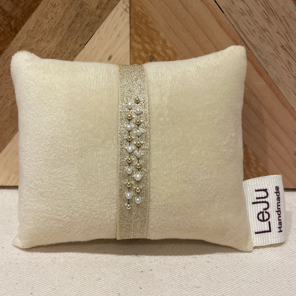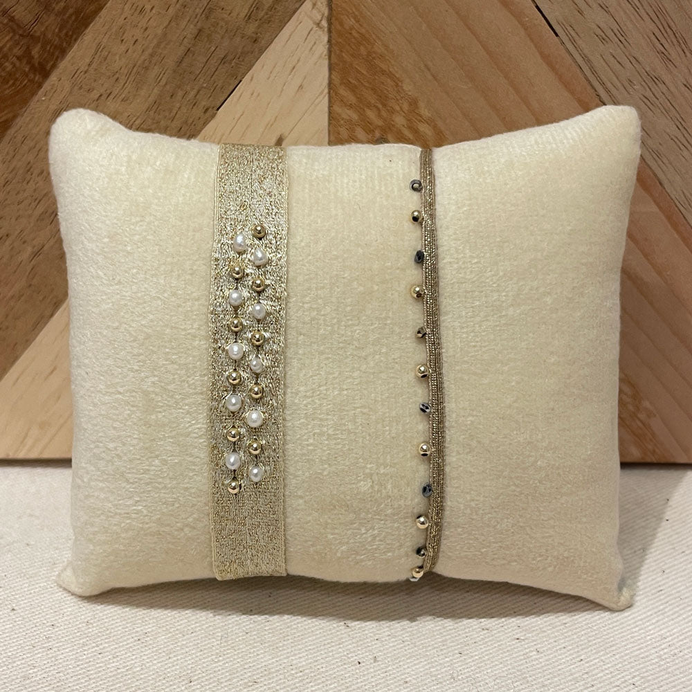 On aime le mix de perles semi précieuses et de laiton tissées sur une base coton. Résistant, il peu être porté sous l'eau.