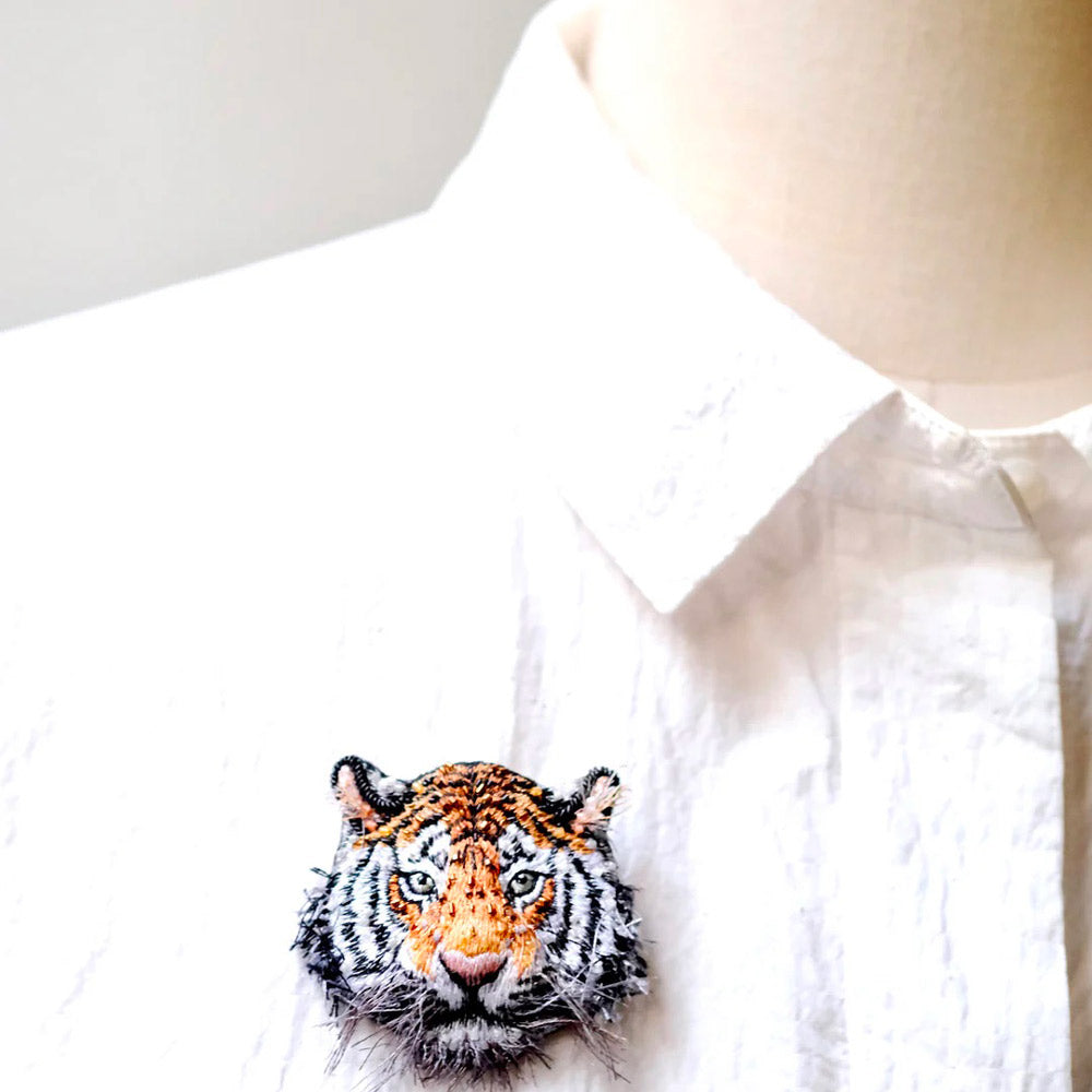 Broche Tigre fabriquée artisanalement en Inde en petites séries.