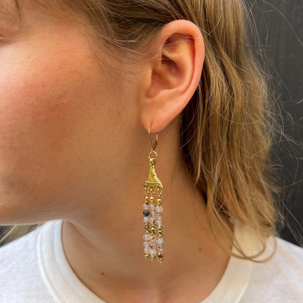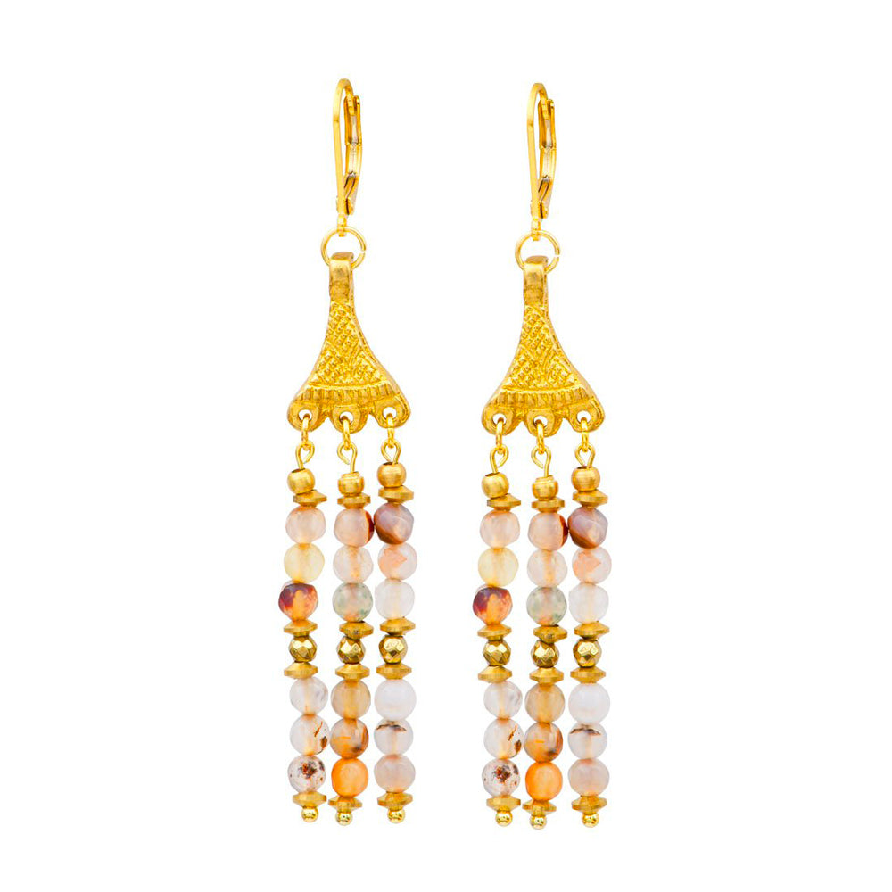 Boucles d'oreilles Kharmari en perles de laiton et de verre.