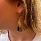 Mono boucle d'oreille en perles de laiton et d'agate.