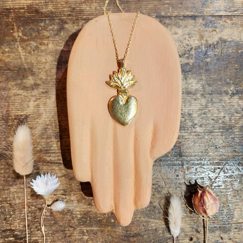 Sautoir en laiton coeur flamme, un plaisir à porter ou à offrir.