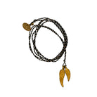 Il est monté sur un fil de coton lurex avec une pampille en laiton. Un nœud coulissant permet de régler sa longueur.