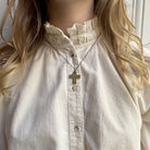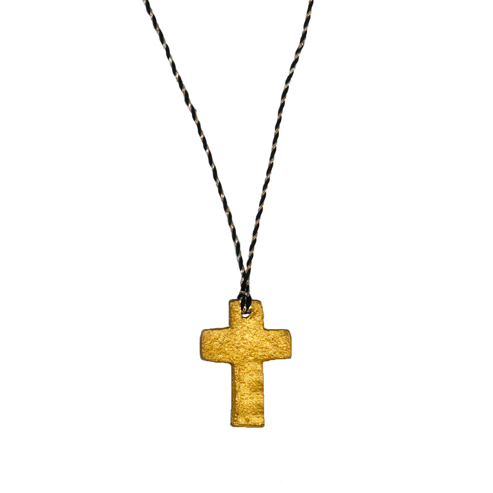 Il est monté sur un fil de coton lurex avec une pampille en laiton. Un nœud coulissant permet de régler sa longueur.
