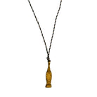 Il est monté sur un fil de coton lurex avec une pampille en laiton. Un nœud coulissant permet de régler sa longueur.