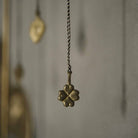 Il est monté sur un fil de coton lurex avec une pampille en laiton. Un nœud coulissant permet de régler sa longueur.