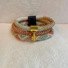 L' histoire : Les bracelets sont confectionnés à la main par des femmes népalaises qui crochètent chaques perles avec soin. L'intérieur des bracelets se compose d'un fil de coton très résistant sur lequel les perles sont enfilées puis crochetées l'une après l'autre en tubulaire.