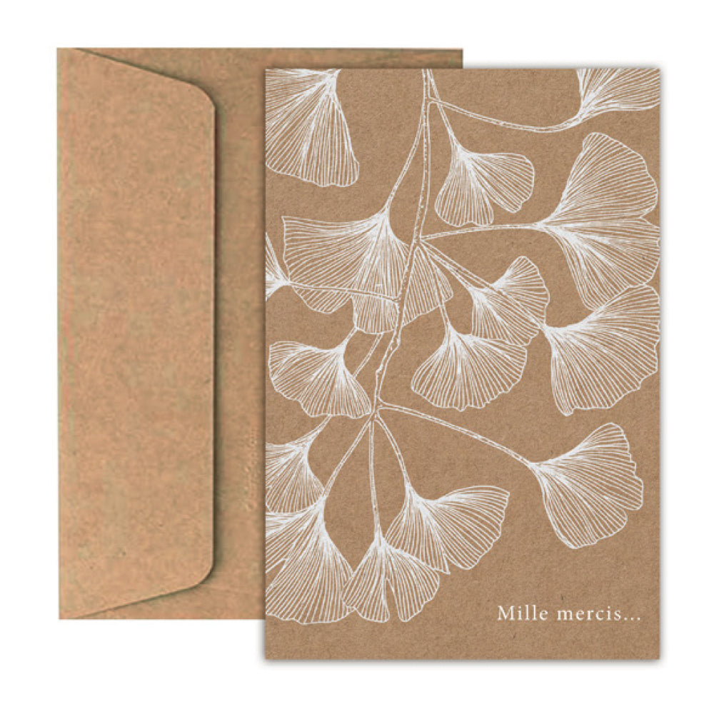 Carte "Milles mercis" illustrée de fleurs. Pratique, elle est livrée avec une enveloppe, prête à être envoyée ou donnée à son destinataire.