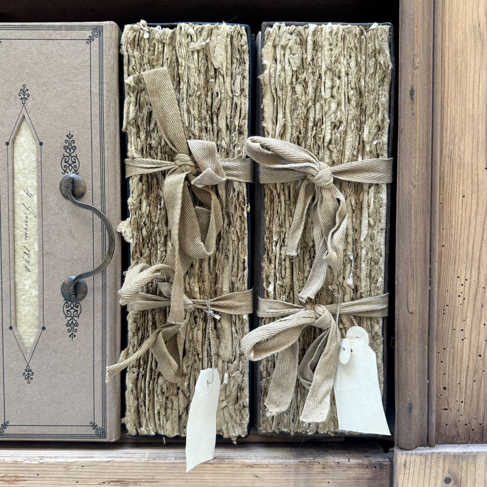 Range-documents tranche esprit livre ancien orné de 2 rubans. Couleur Kraft.