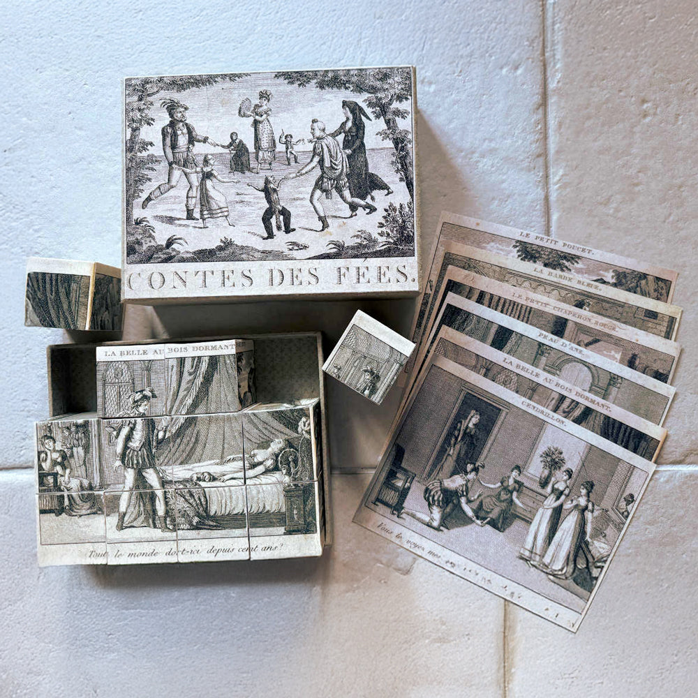 Puzzle 12 cubes vintage. Ces 12 cubes vous permettront de créer 6 illustrations sur le thème "Contes de fées".