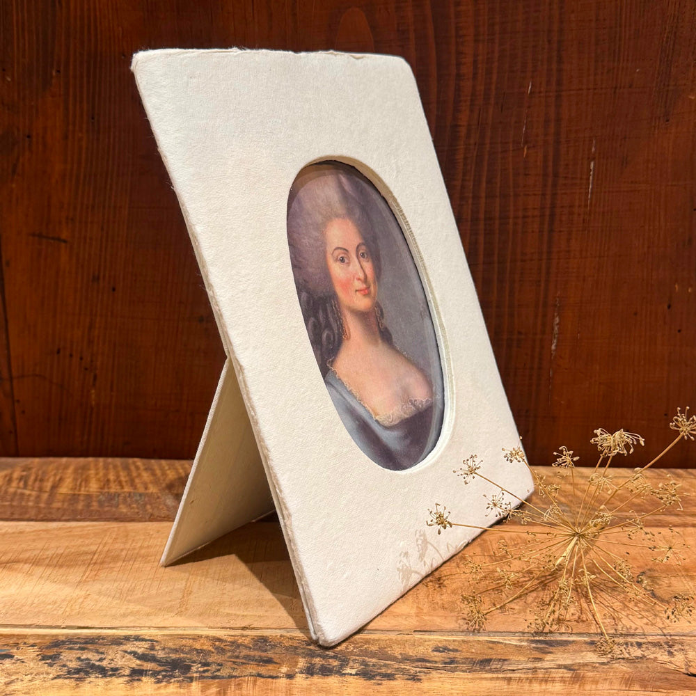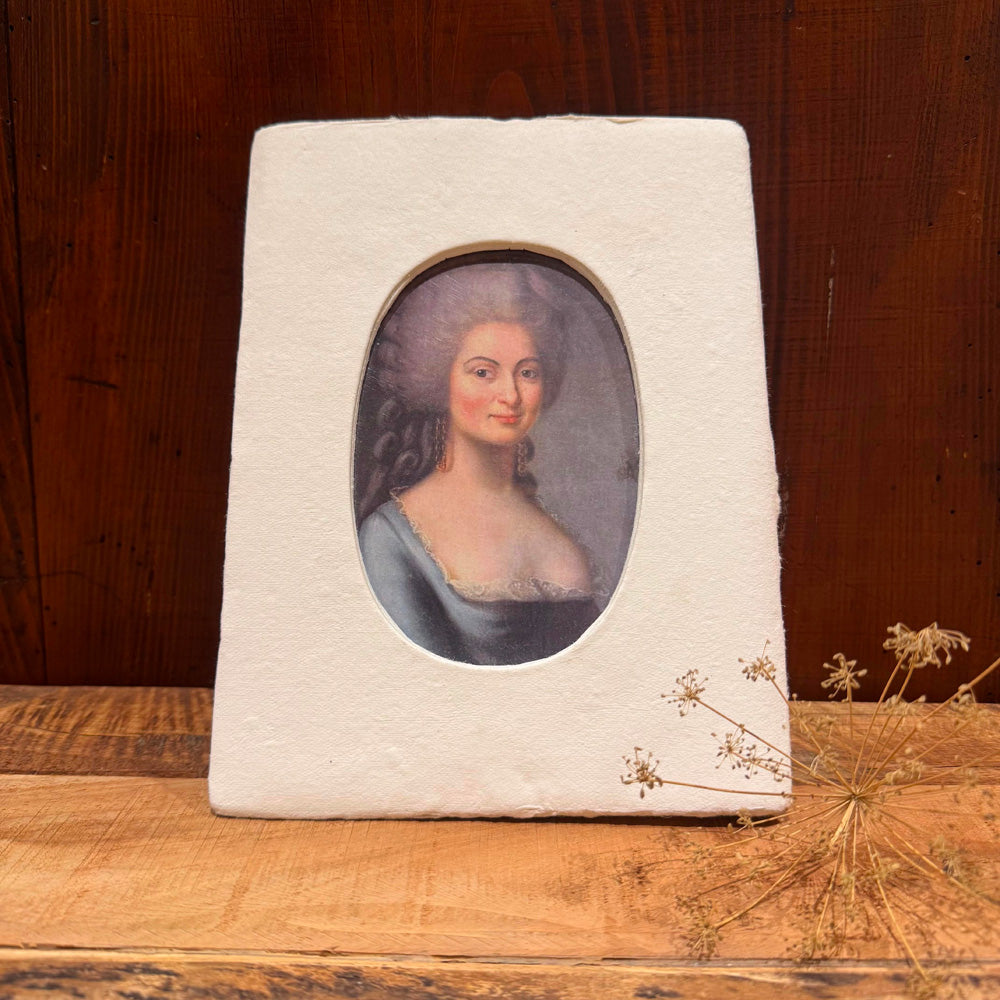 On aime le coté authentique et brut de ce cadre en papier coton, il arrive chez vous avec un portrait esprit Régence.