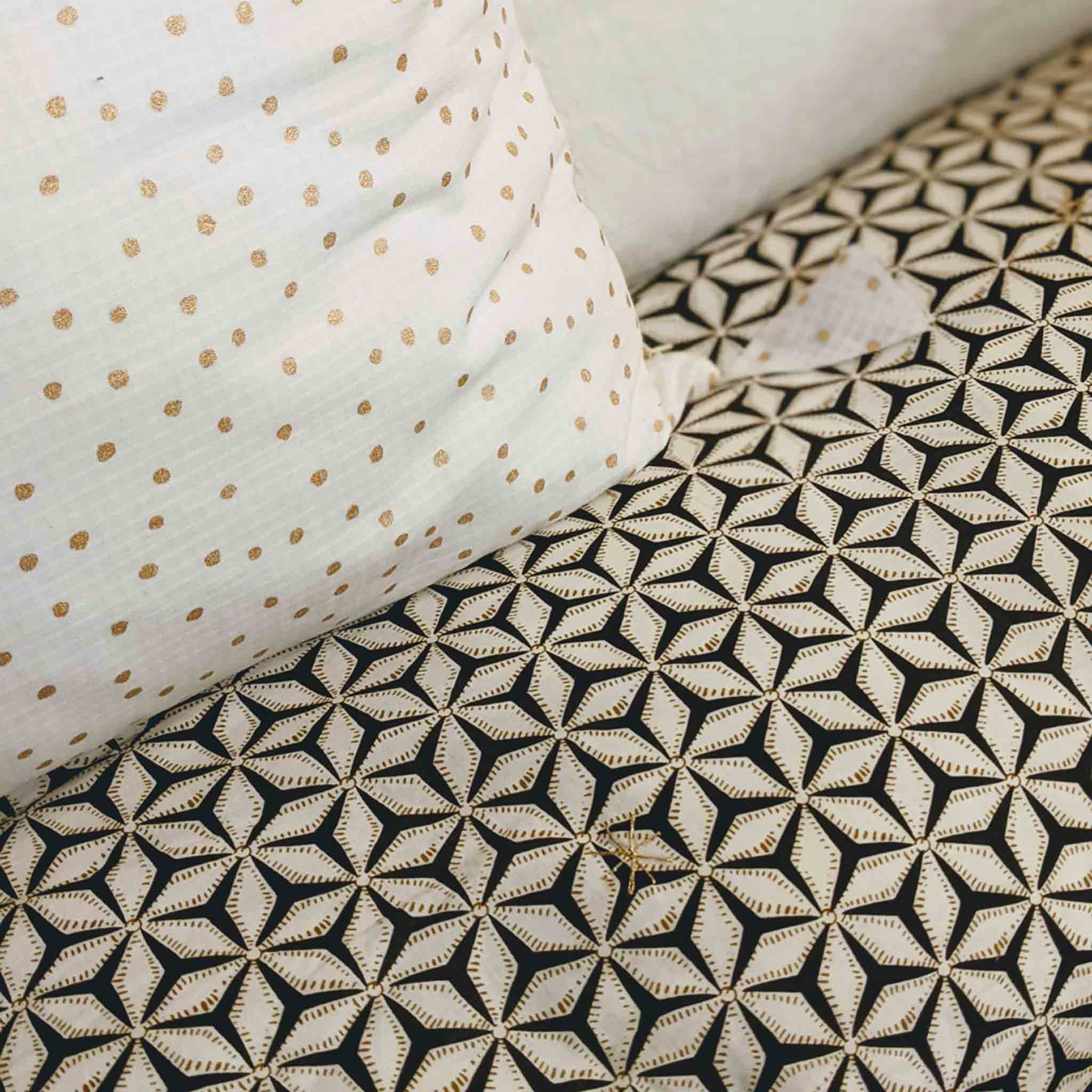 Vendu garni, déhoussable, fermeture par boutons en laiton forme coeur sacré au dos.