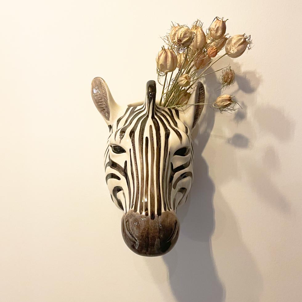 Vase mural zèbre en céramique peint à la main.