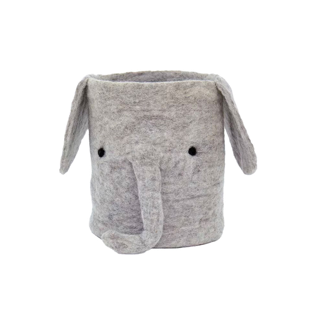 Panier en forme de tête d'éléphant, fabriqué en laine feutrée.