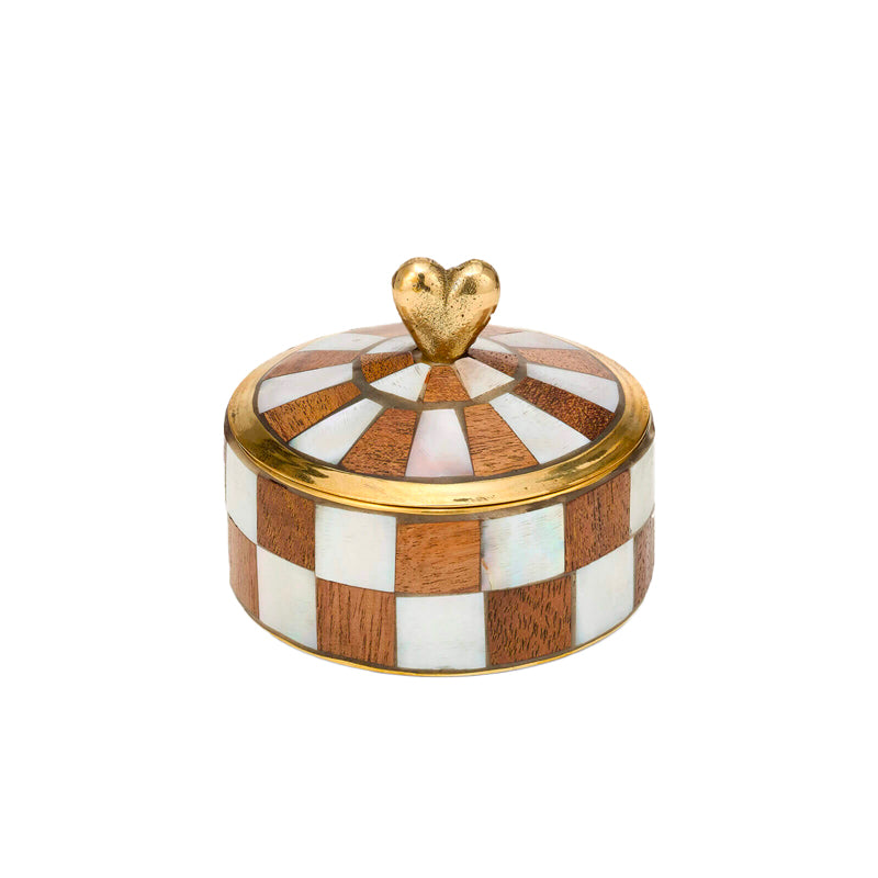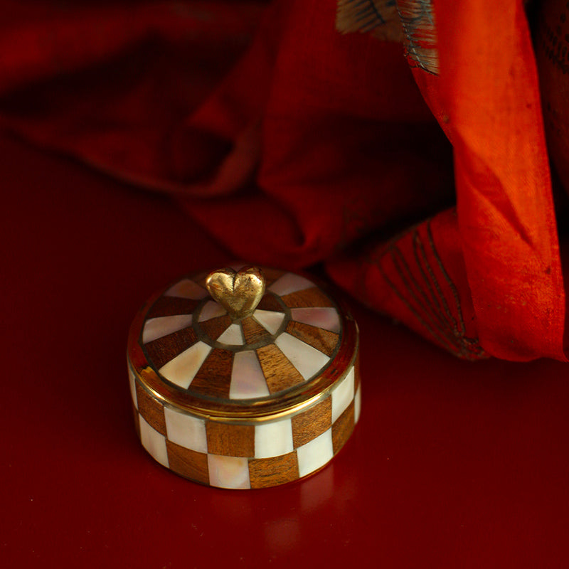 Petite boite à bijoux en bois et en laiton, ornée d'un petit coeur.