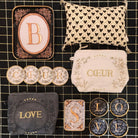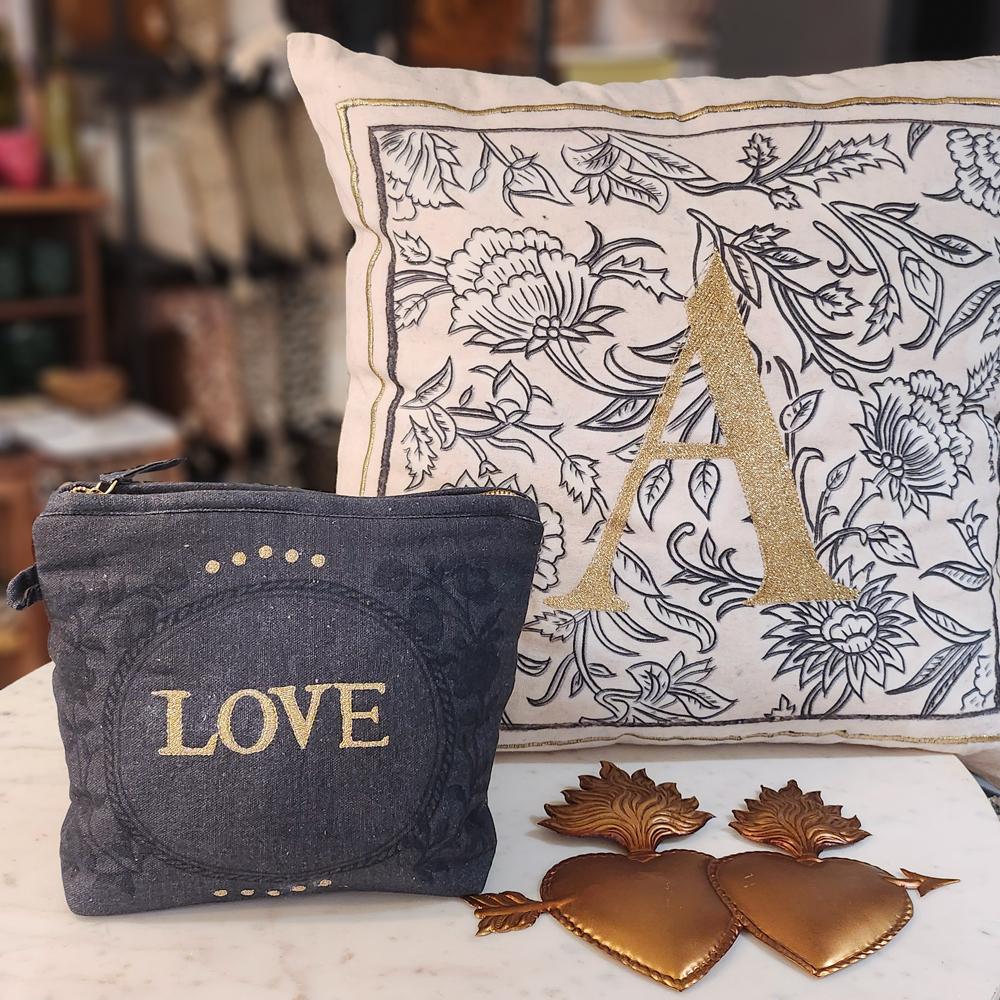 Pochette en coton brodé "LOVE" au fil doré par Boncoeurs.