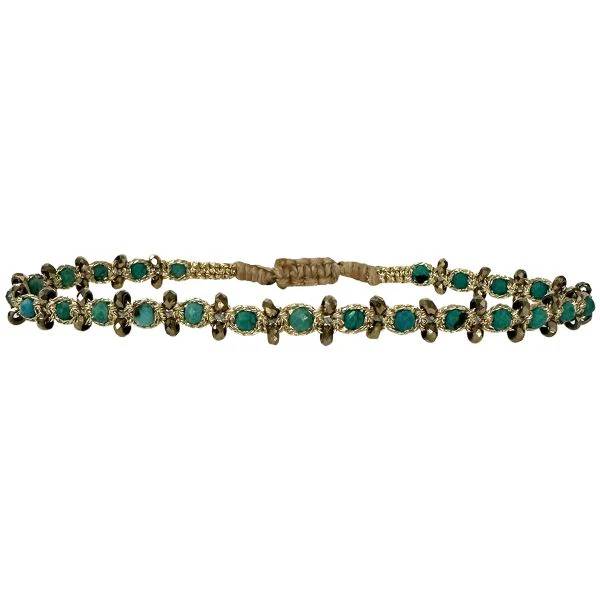 Bracelet ajustable en pierres semi-précieuses d'hématite tissées, par des fils métalliques à des perles de turquoise