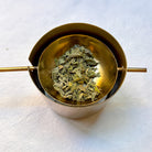 Brûleur à herbes en métal couleur bronze.