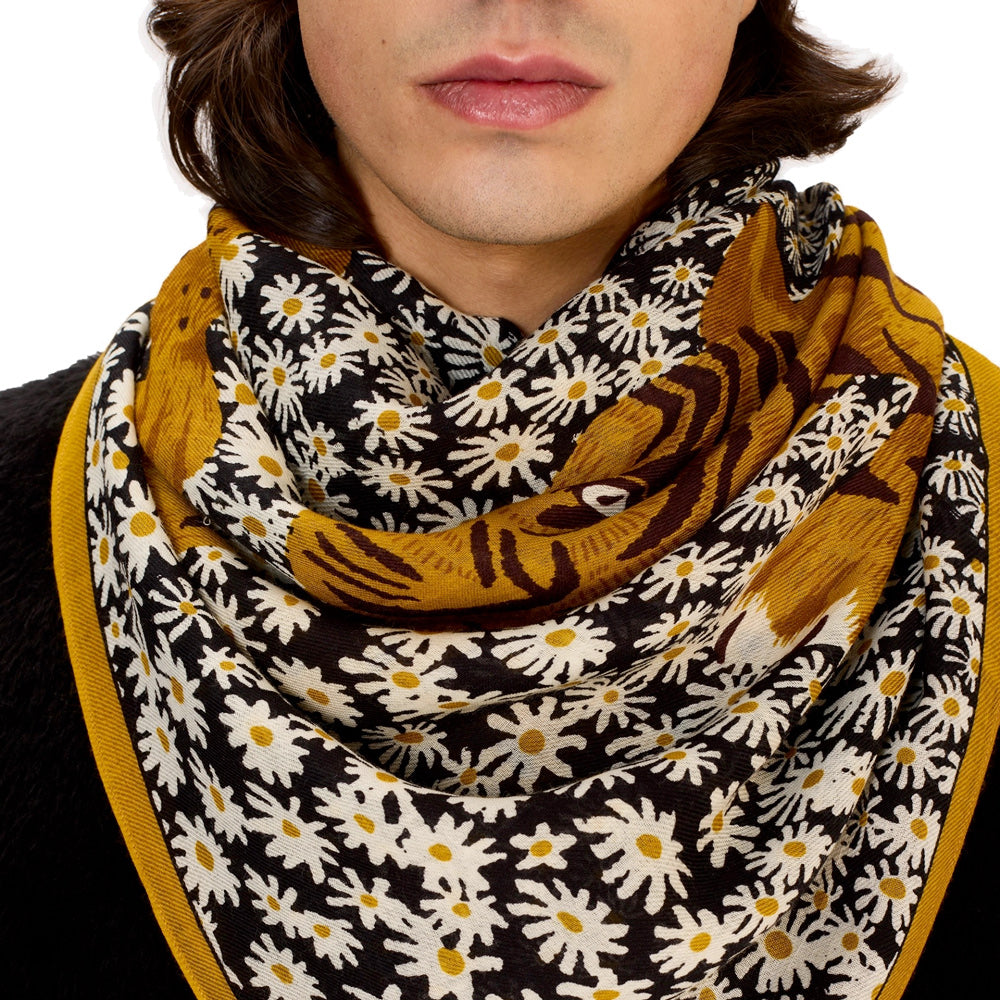 Carré de 130 cm. À porter porter autour du cou, en top ou sur les cheveux.