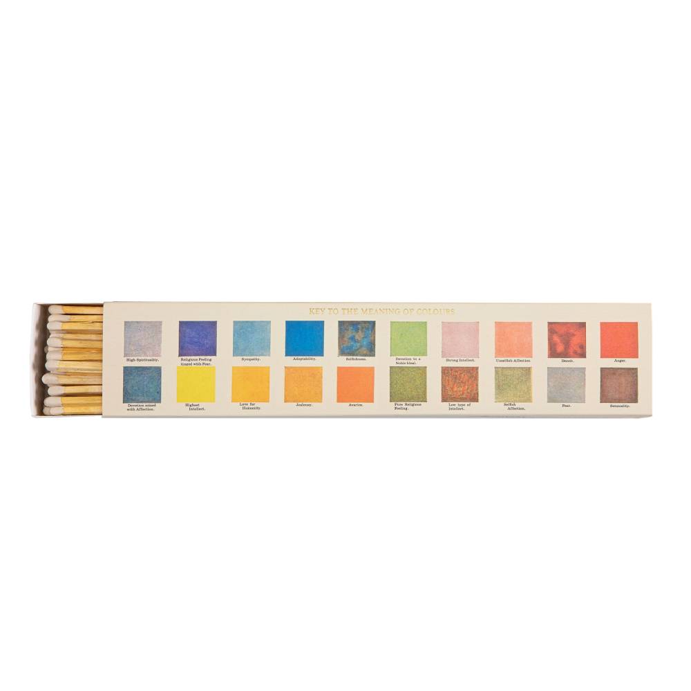 Boîte de 45 allumettes longues, délicatement illustrée d'une palette de couleurs.