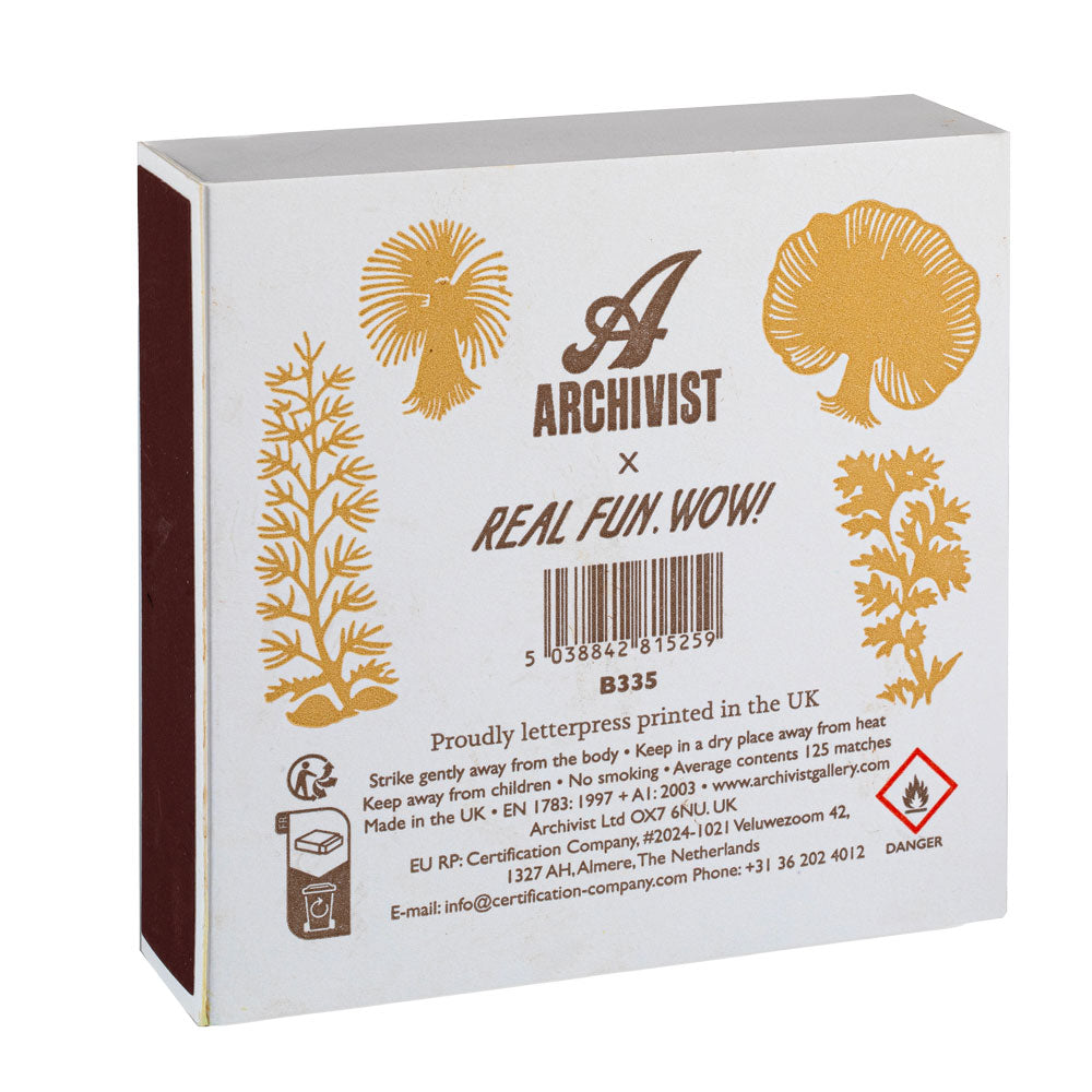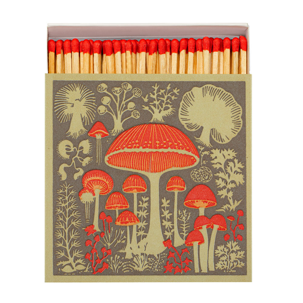 Boite de 100 allumettes illustrée de champignons.