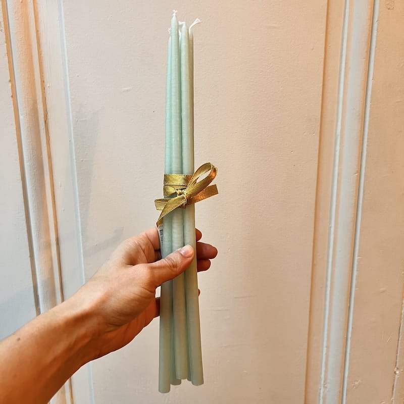Bougies "fleuriste" coloris coloris Céladon, vendues par lot de 5 unités.