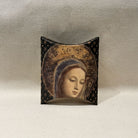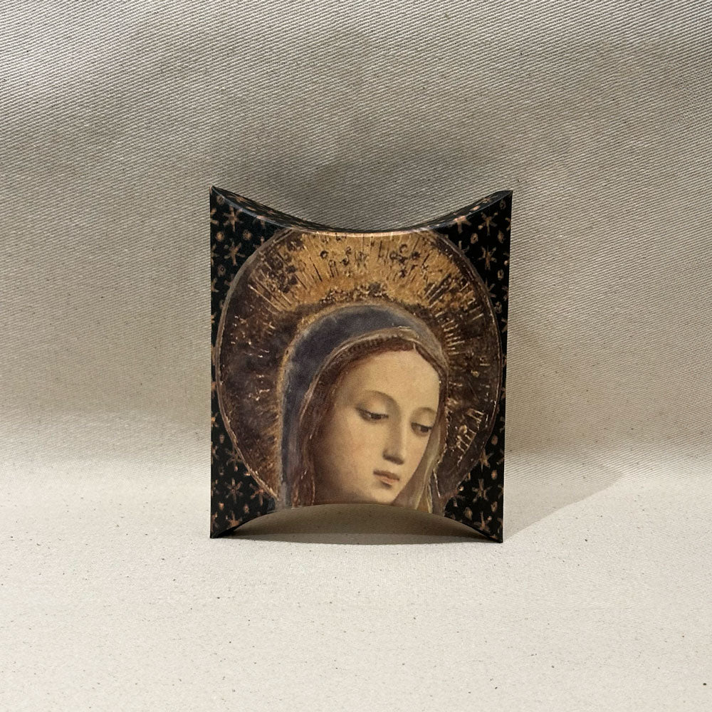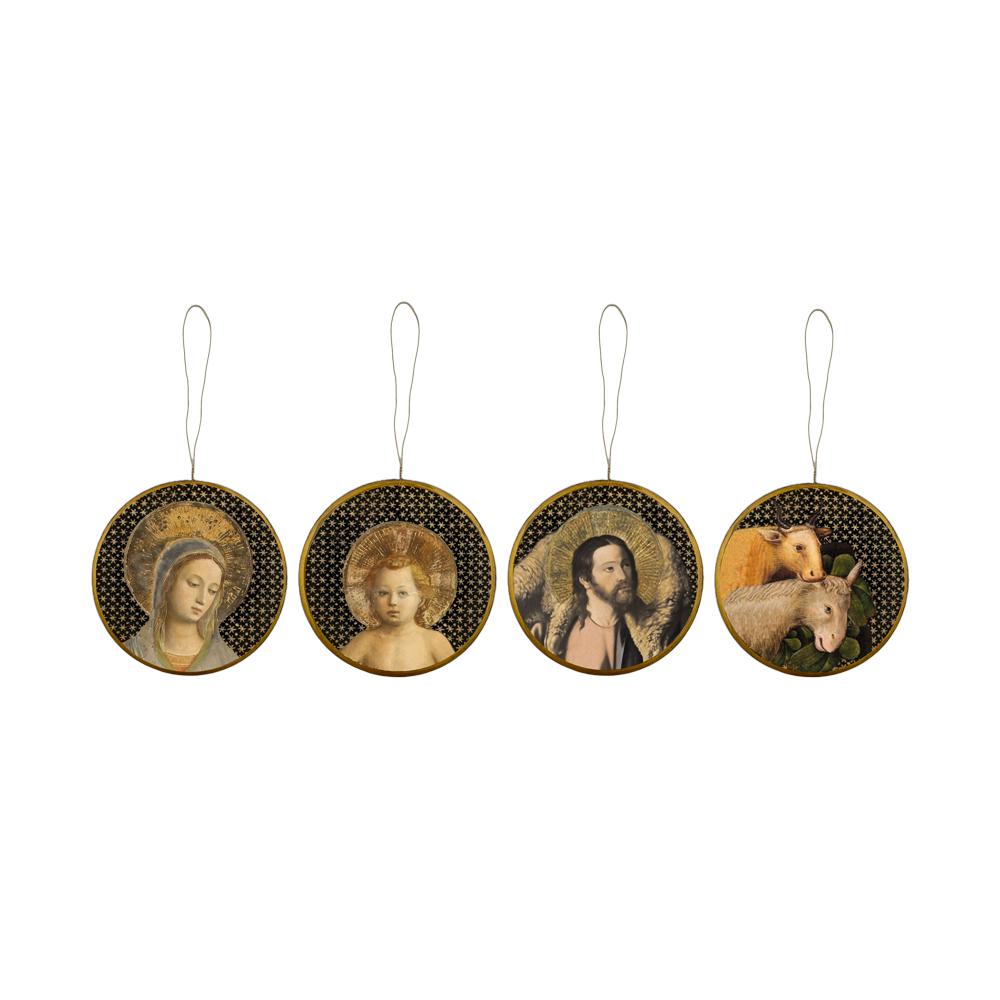 Les médaillons reprennent les personnages traditionnels de la crèche, l’enfant Jésus, Joseph, Marie, l’âne et le bœuf. Les médaillons sont illustrés recto/verso et la bordure est dorée.
