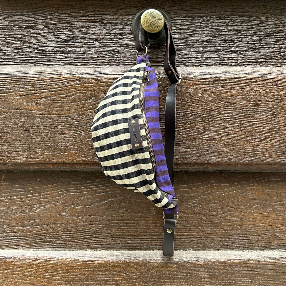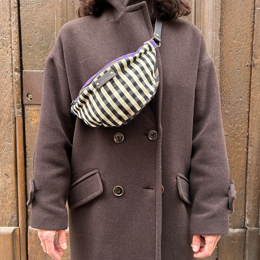 Banane en coton avec une grande ouverture zippée. Avec sa anse réglable en cuir, elle s'adapte à tous.