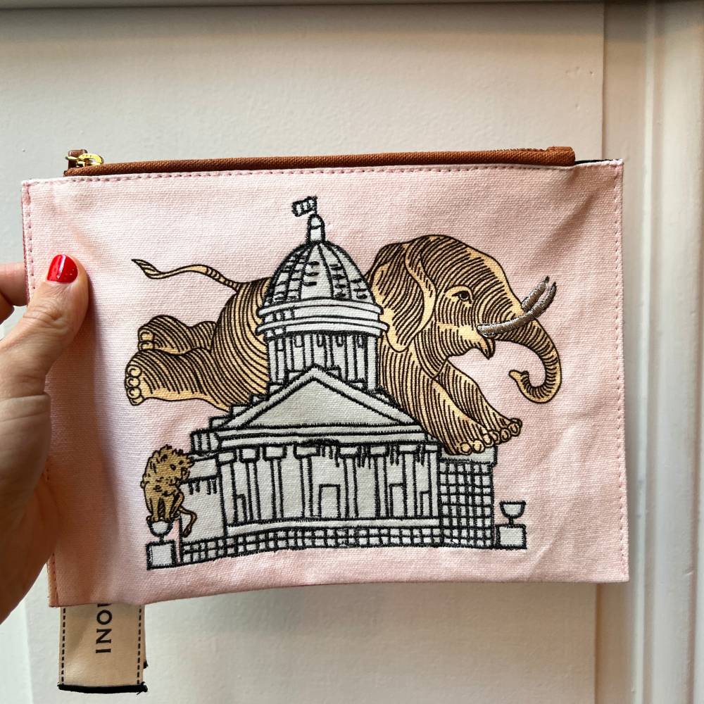 Pochette brodée - Eléphant pastel