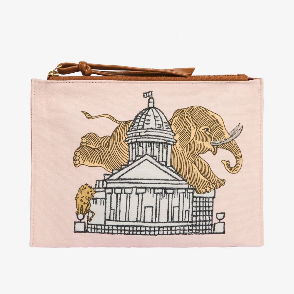 Pochette brodée - Eléphant pastel