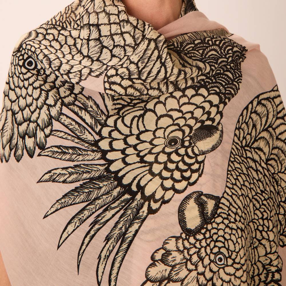 Sa grande dimension de 100 x 190 cm et son imprimé apporteront une touche d'originalité à vos looks tandis que sa composition en pur coton en fera une étole respirante.
