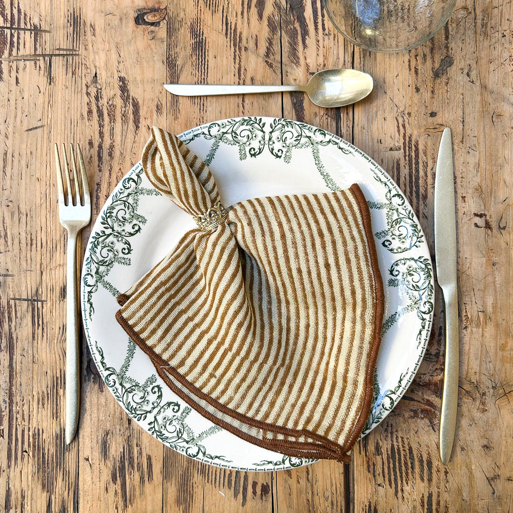 We love the multitude of matching prints that allow you to play the mix and match card when setting the table. Practical, cotton gauze is a naturally wrinkled material, you can say goodbye to ironing… All these prints are available in tea towel version. Pair your napkins with wreaths or rings that you can offer to your guests.