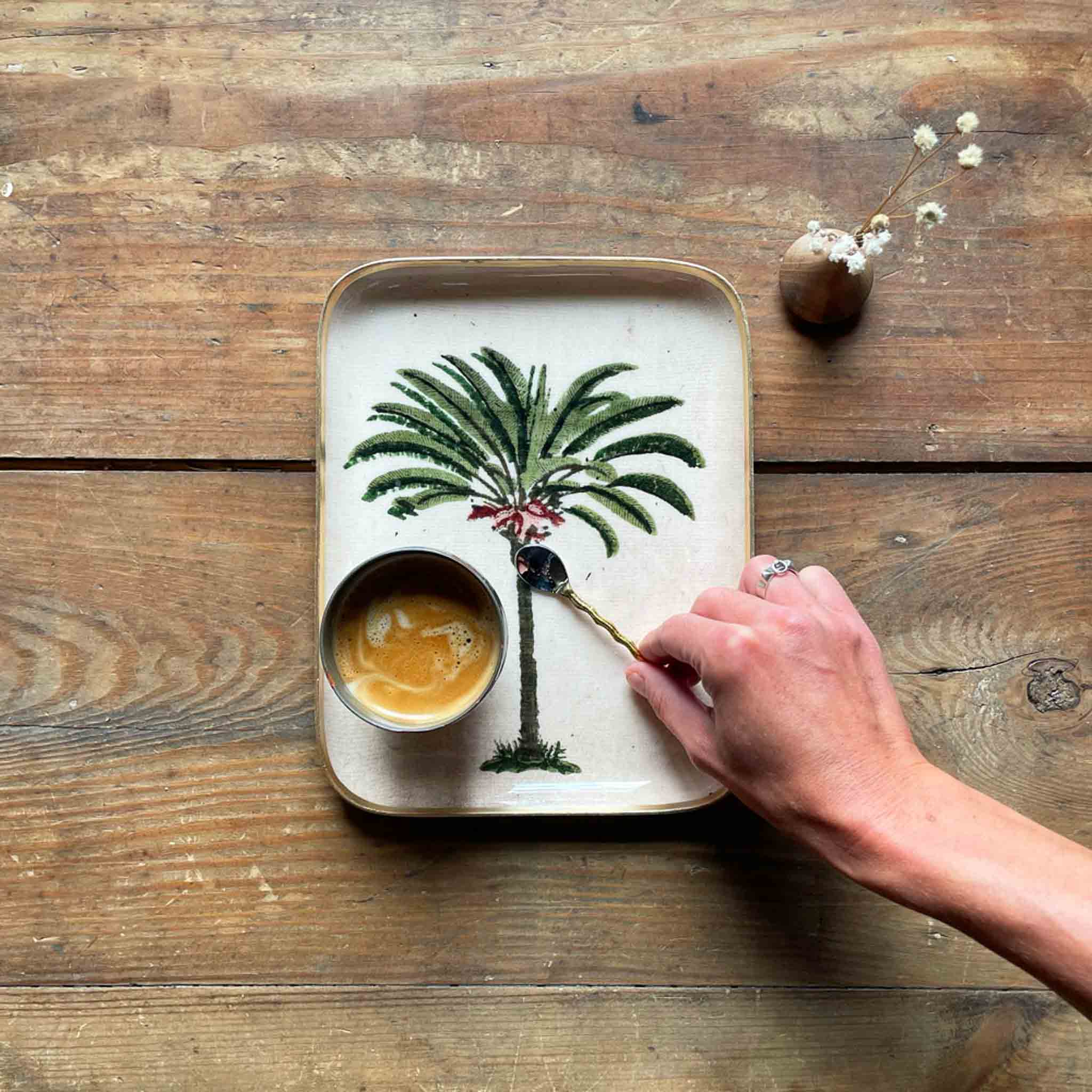 Rectangular tray 24.5cm x 19cm in enameled aluminum - “Palm Tree” print
