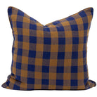 Printed cushion cover - large navy blue and tobacco check polka dots.