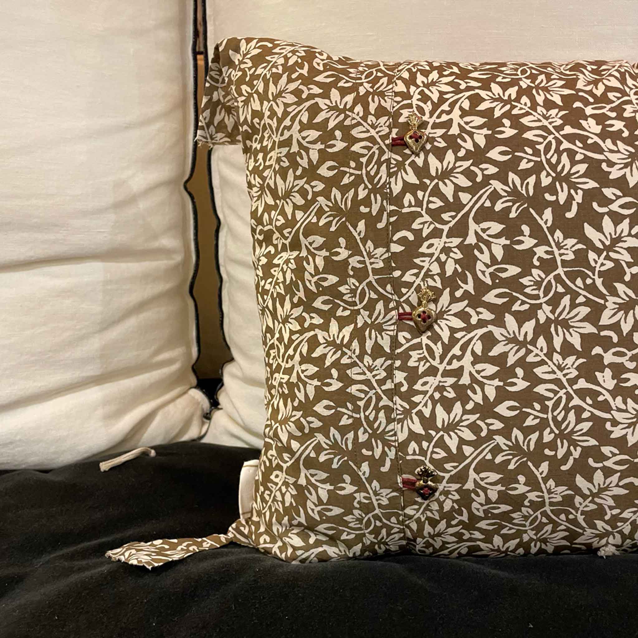 40X60 cushion embroidered and printed "Rameau" - sold filled, removable cover, closing buttons on the back in the shape of a sacred heart in brass - 2 colors available