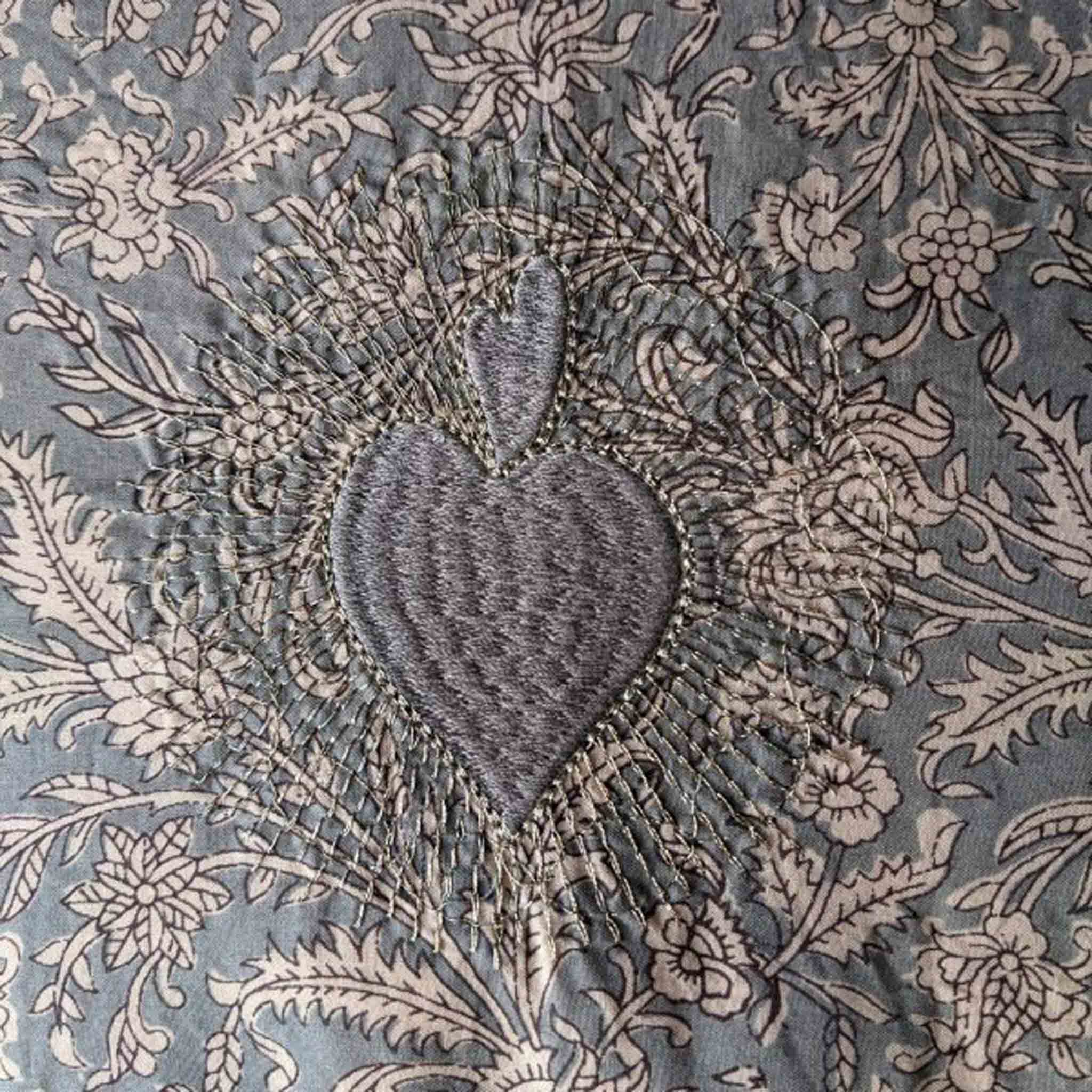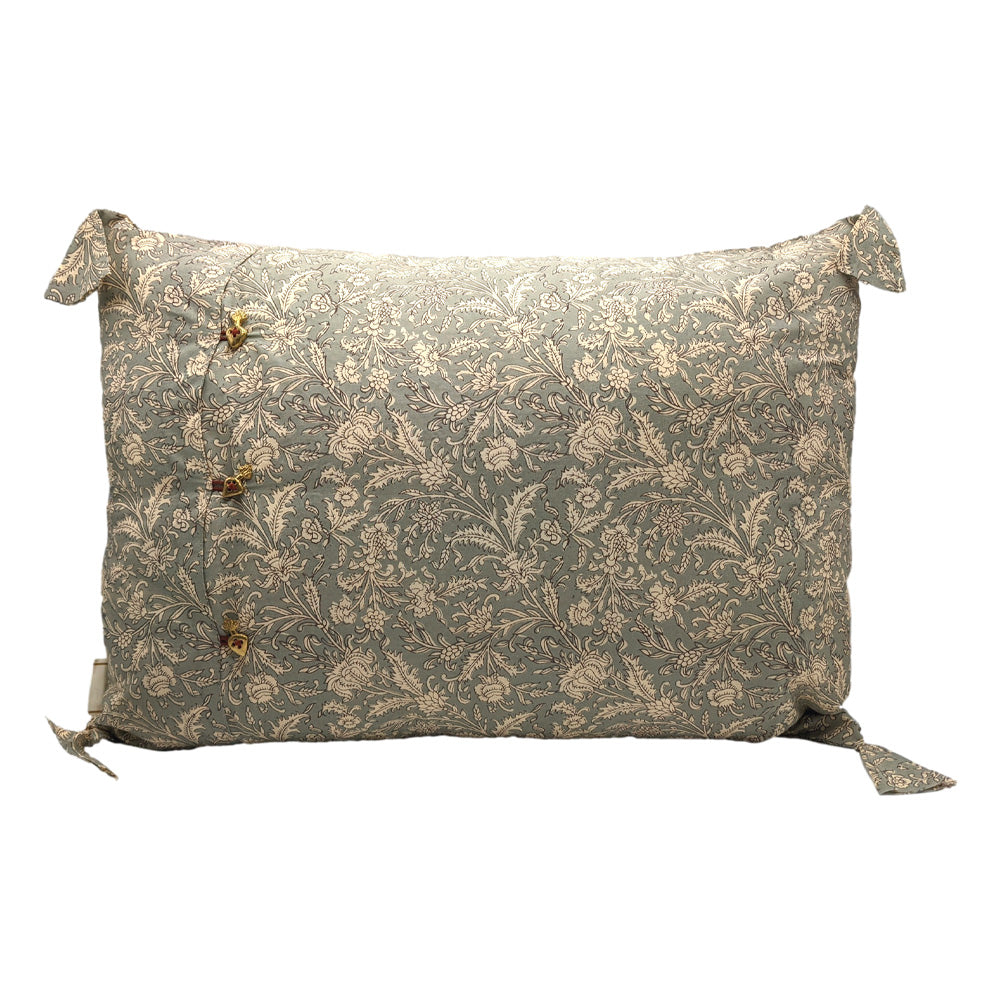40X60 cushion embroidered and printed "Flower" - sold filled, removable cover, closing buttons on the back in the shape of a sacred brass heart.
