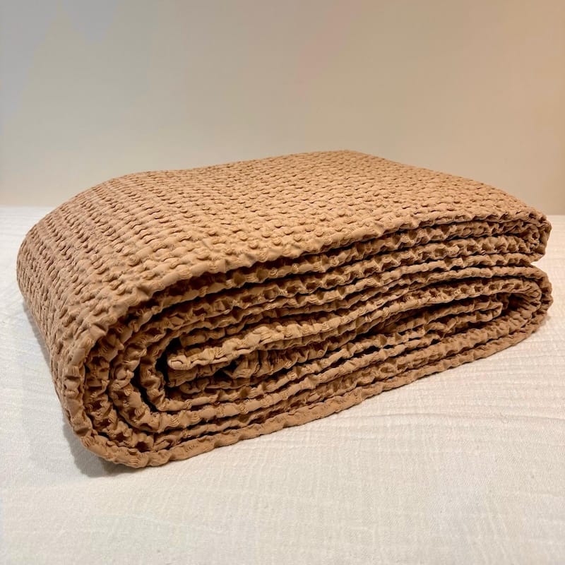 Pure cotton bedspread, lemon-brown color, "honeycomb" effect.