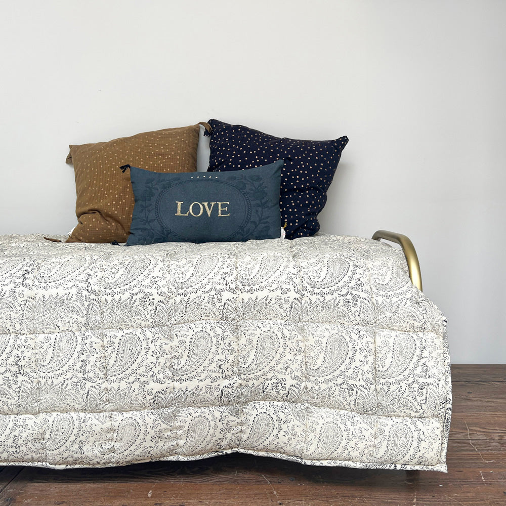 Cotton quilt 220 x 240 cm - hand-printed with a wooden block in India.