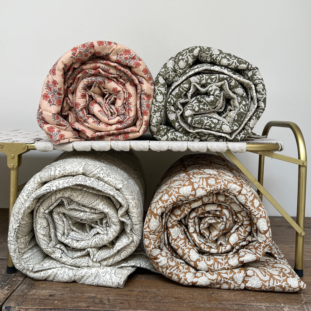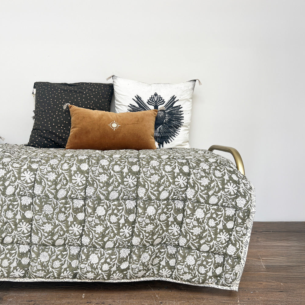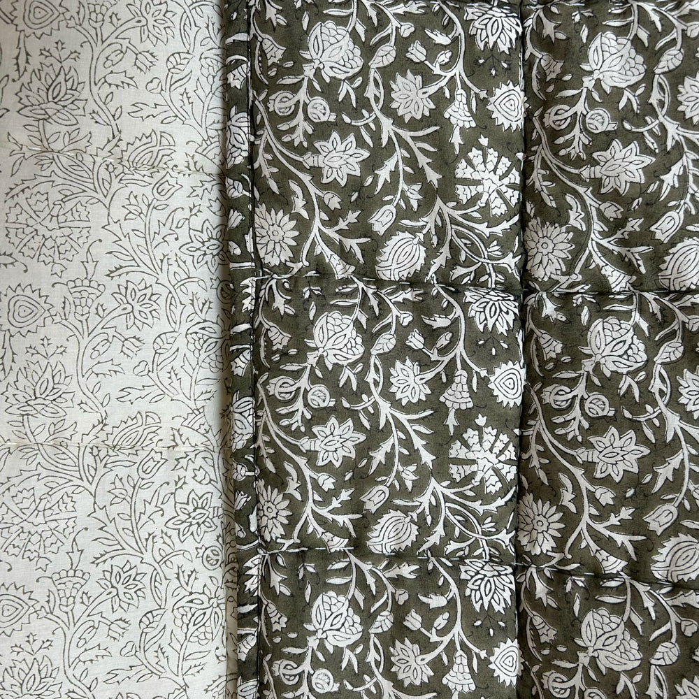 Cotton quilt 220 x 240 cm - hand-printed with a wooden block in India.
